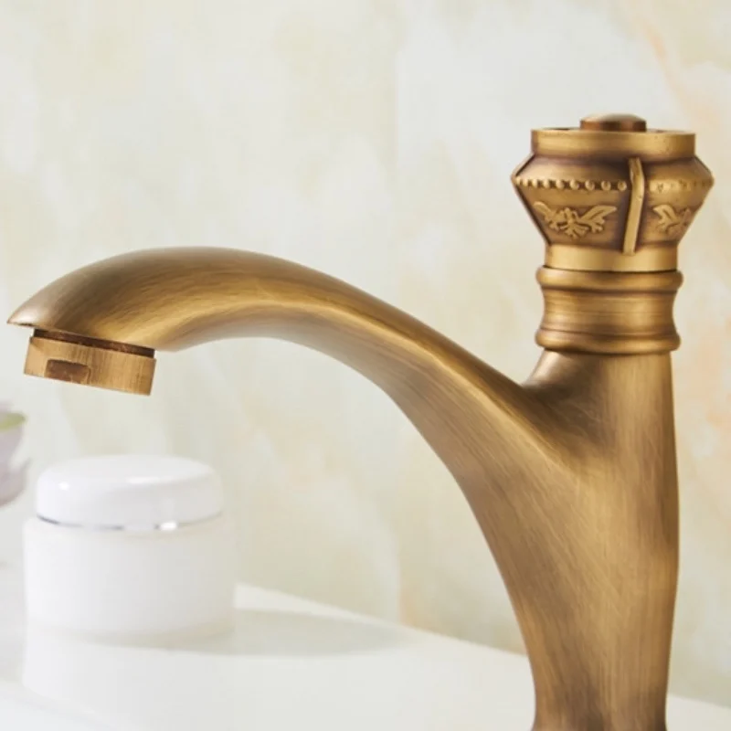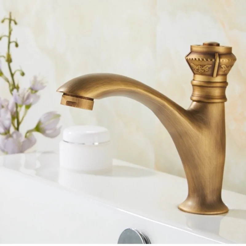 All copper European antique carved single cold faucet single hole cold water basin balcony laundry tub