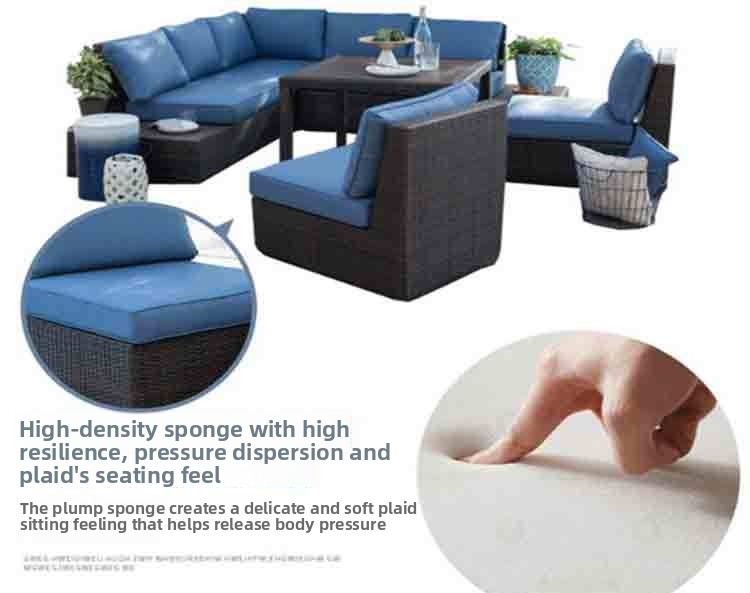 Balcony rattan furniture garden courtyard leisure rattan chair outdoor American country L-shaped corner combination sofa coffee table