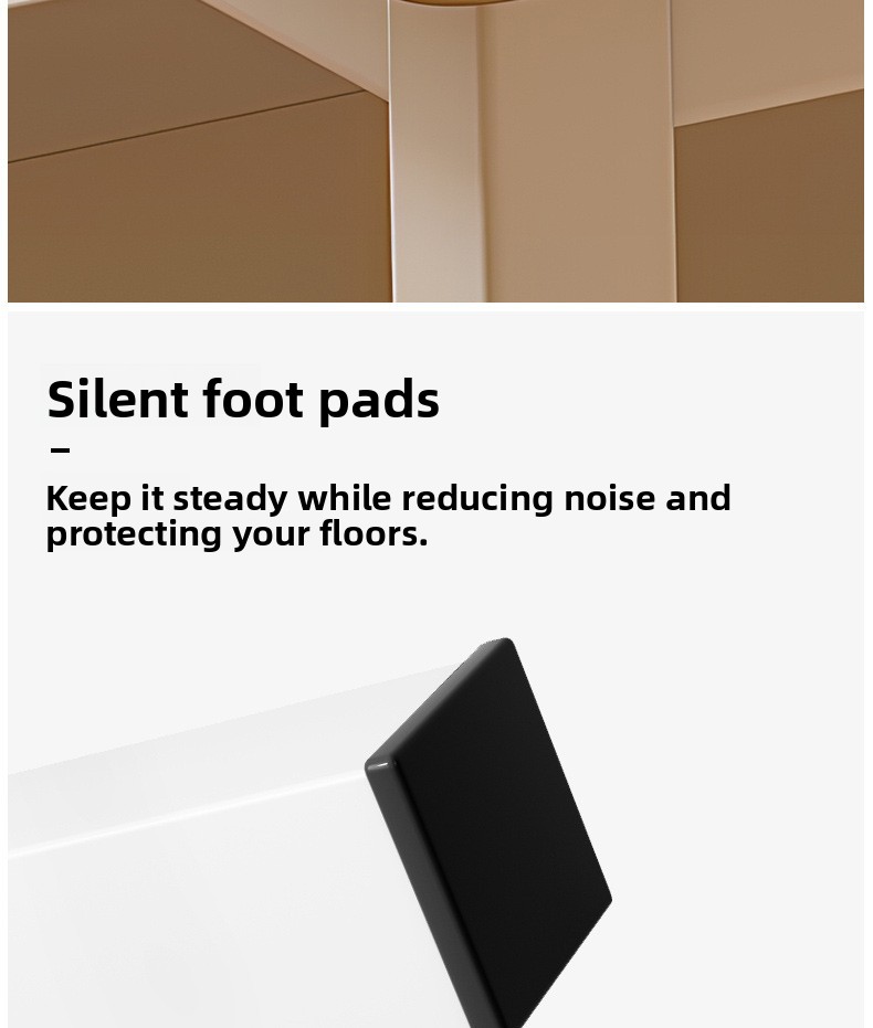 E1 grade boards with food-grade spray coating meet EU formaldehyde standards. Rounded edges prevent bumps while silent foot pads protect floors and reduce noise.