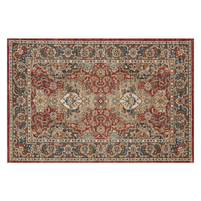 Boasts intricate patterns blending geometric shapes and floral motifs in rich red, blue, and beige tones. The classic medallion center and ornate border reflect authentic Persian artistry, adding a touch of timeless luxury to modern, Scandinavian, or eclectic interiors.