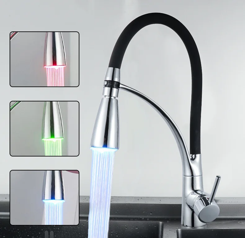 Factory Price Brass Pull Out Led Light Sink Faucet Modern Kitchen Faucet