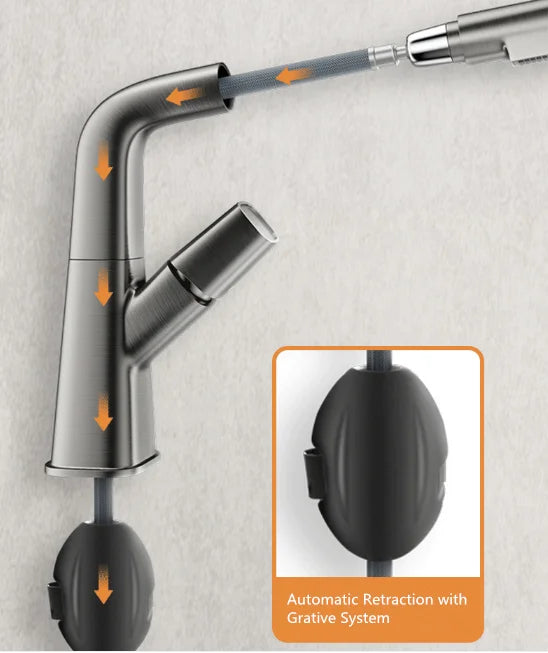 Gun Gray Adjustable Rotary Pull Out Basin Single Hole Faucet Pure Brass Matte Black Toilet Bathroom Vanity Top Mixer