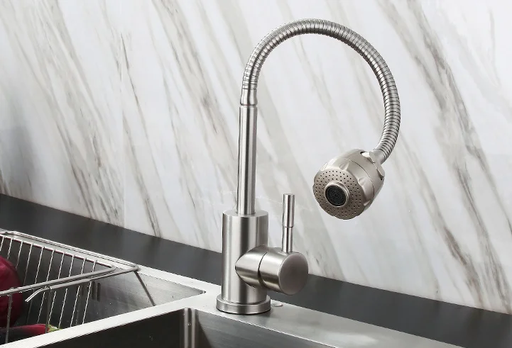 304 stainless steel kitchen sink hose water mixing faucet with shower head