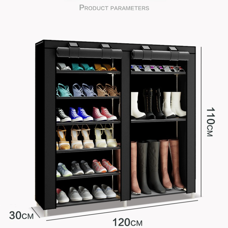 Features multi-tier designs (6-10 layers) that can store 30+ pairs of shoes vertically. The compact structure maximizes space efficiency while keeping footwear neatly organized and easily accessible.