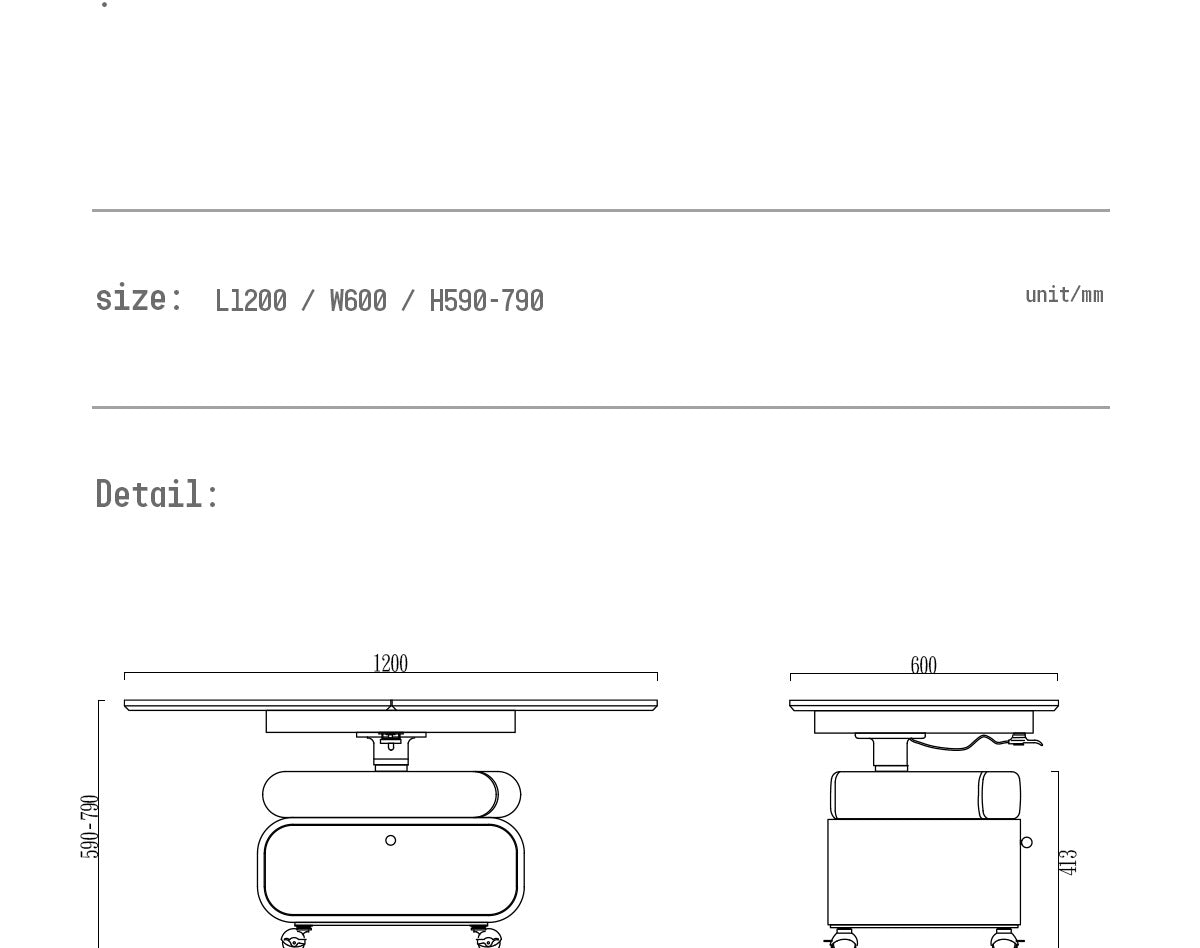 Features a foldable tabletop that rotates 360° and hydraulic lifting system with height adjustment from 590mm to 790mm. Equipped with four swivel casters for easy mobility and flexible placement in any living space.
