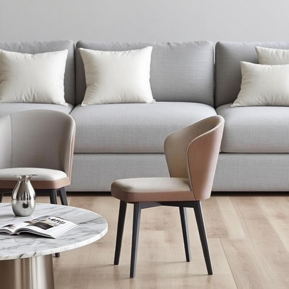 This sophisticated dining chair combines artisanal woodcraft with industrial strength, featuring solid walnut legs with carbon steel reinforcement and a gently curved backrest with sand beige cushioning. Measuring 50×59×82cm, its minimalist silhouette blends ergonomic comfort with timeless Scandinavian design. Perfect for elevating dining rooms, modern kitchens, or boutique cafes, this chair creates a harmonious balance of natural warmth and contemporary elegance.