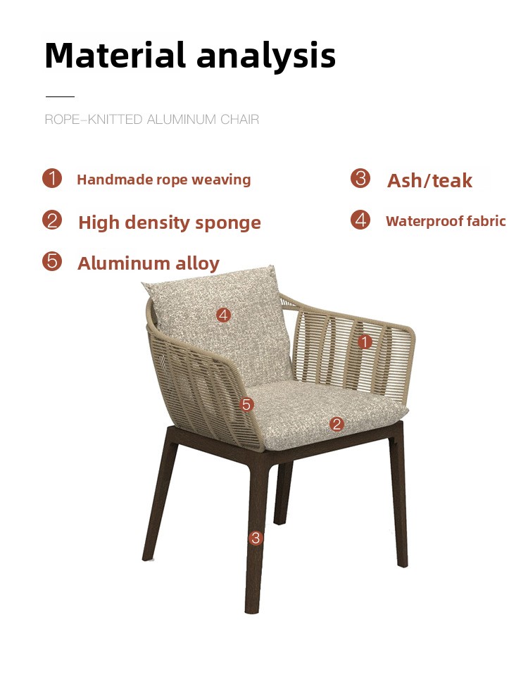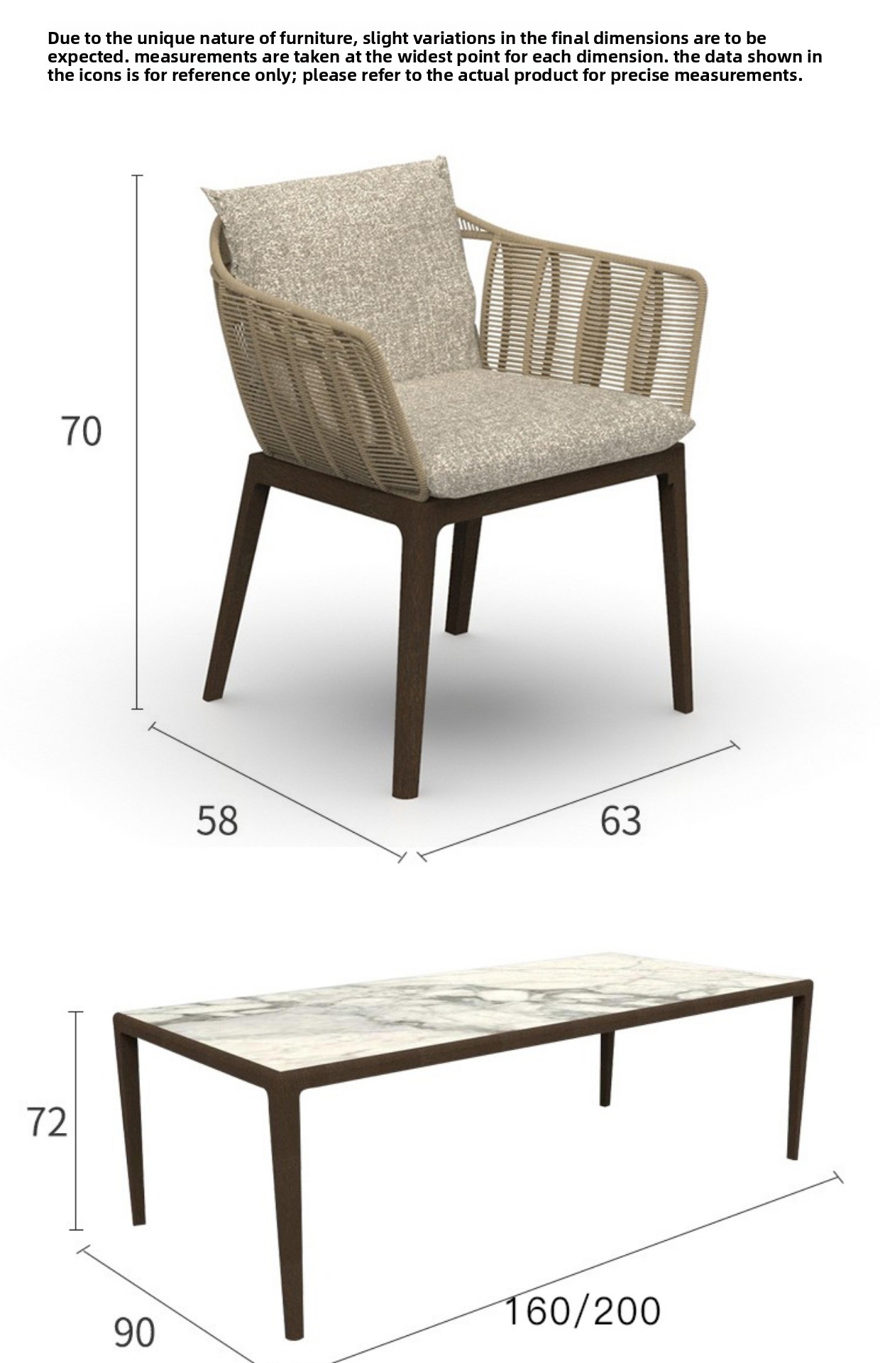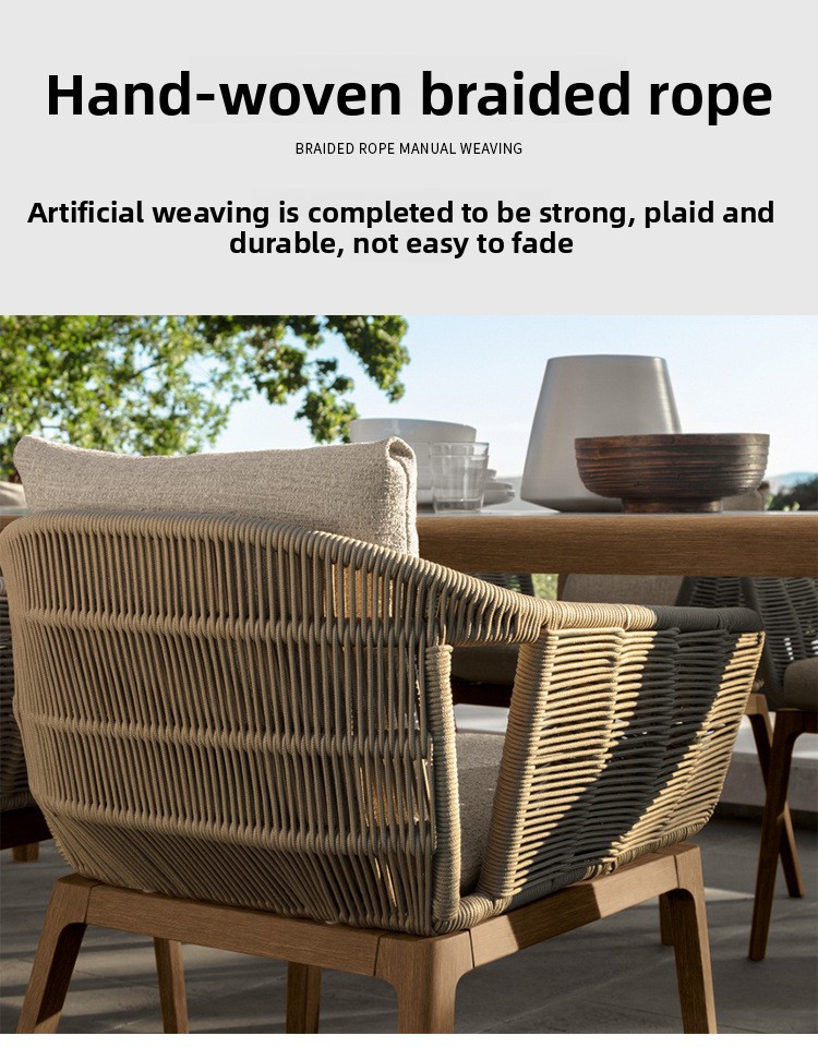 Outdoor dining table and chair combination teak courtyard villa garden restaurant outdoor leisure model room bed and breakfast rattan chair furniture