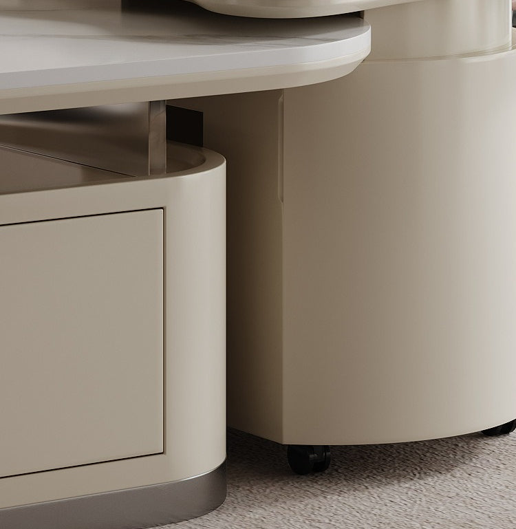 Features smooth-operating drawers with silent damping slides and hidden storage compartments. The oval tabletop offers ample space for decor, books, and tea sets while keeping your living area organized.