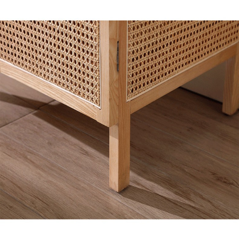 Crafted from North American FAS-grade solid ash wood and hand-woven Indonesian onyx rattan. Each piece showcases unique natural grain variations - a testament to its authentic handmade quality. The combination provides exceptional durability with breathable storage.