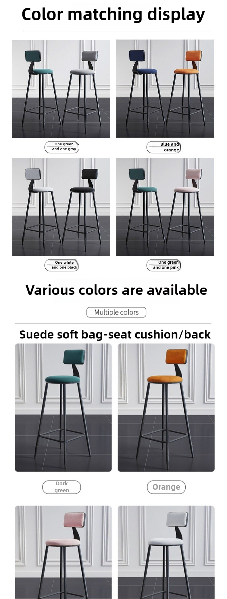 Wrought iron bar chair Modern simple home backrest Bar stool Bar chair High stool Nordic milk tea shop Front desk chair